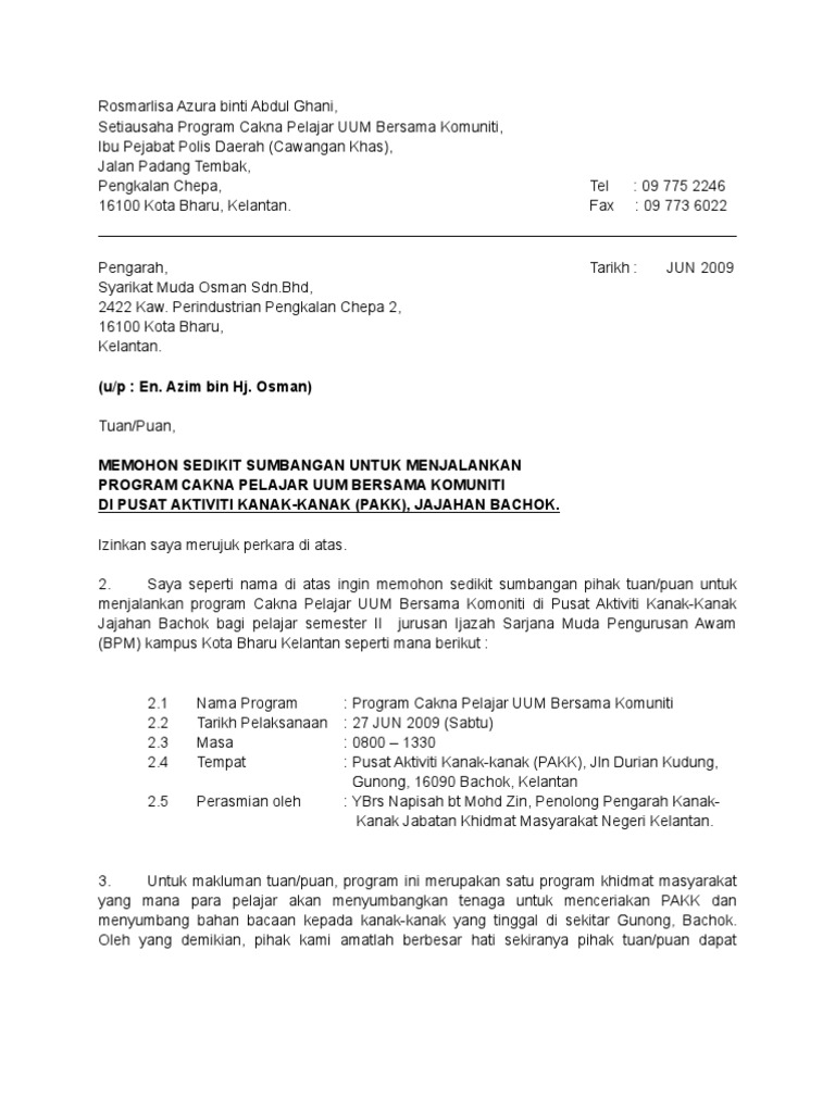 Contoh Surat Rasmi Memohon Sumbangan Wang Surat Rasmi 1